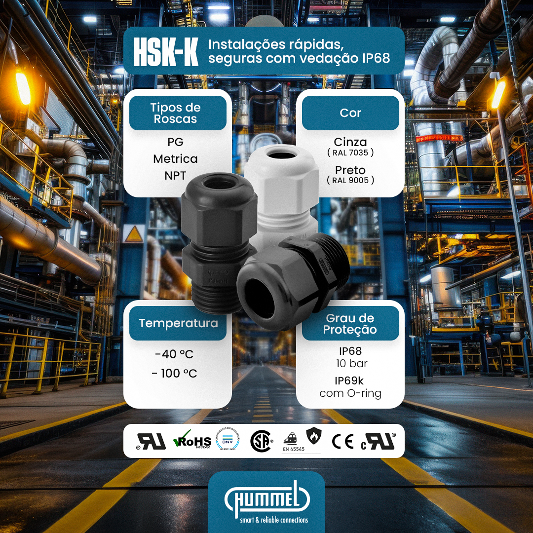 Você sabia que o prensa cabo HSK-K combina praticidade de instalação com alto desempenho técnico?