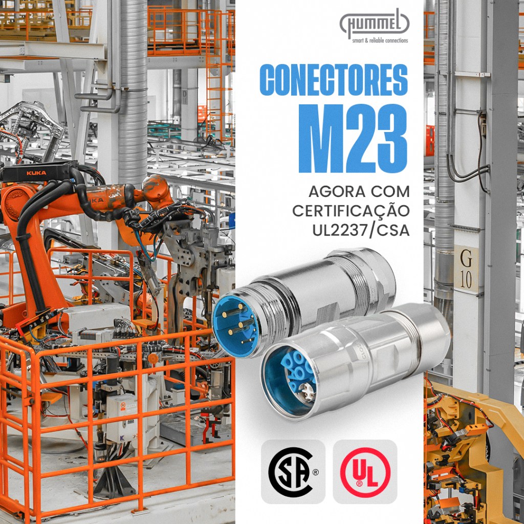 Confira mais detalhes no site oficial da HUMMEL AG: https://www.hummel.com/en/news/news-blog-en/news/detail/news/ul2237-csa-zulassung-fuer-m23-hybridsteckverbinder-1/
